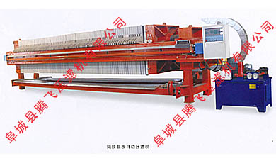 数量的多少及滤板形式的改变,可组成不同的过滤面积和容量。自动系统高效精煤压滤机采用机、电、液一体化设计制造,能够实现自动压紧、过滤、穿流、压榨、松开、拉板等过程;自动压滤机各种过程都由电气柜控制,按可编程控制器设定的程序进行。